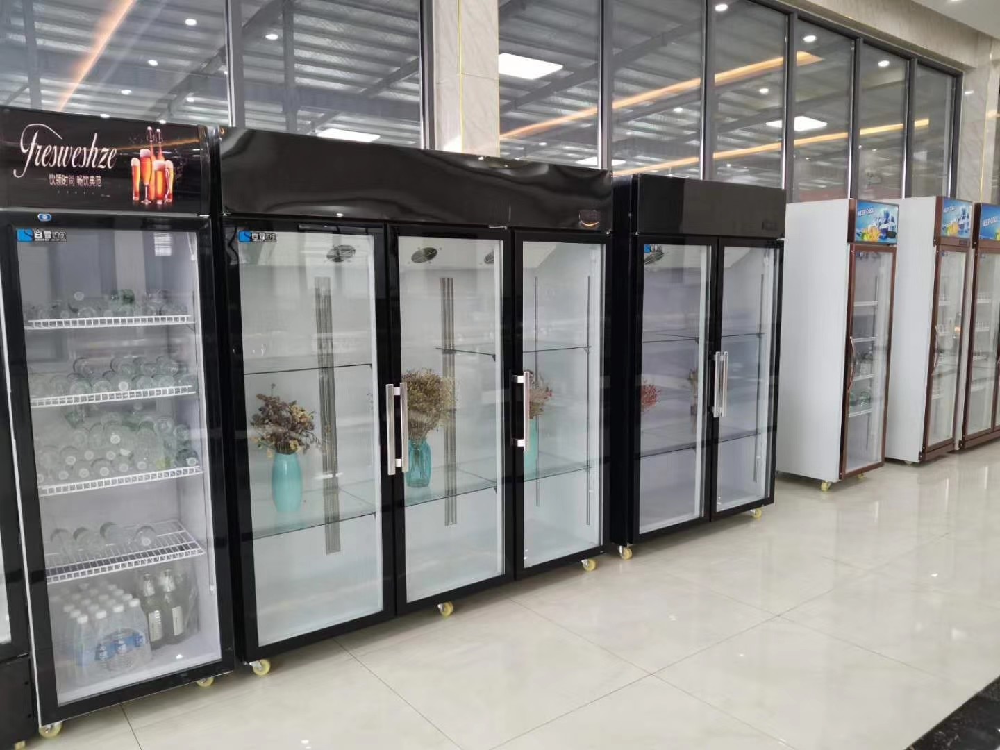 Eigenschaften des frischen Kastengefrierschranks, Glasblumenanzeigengefrierschrank für Blumen.