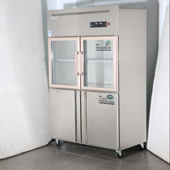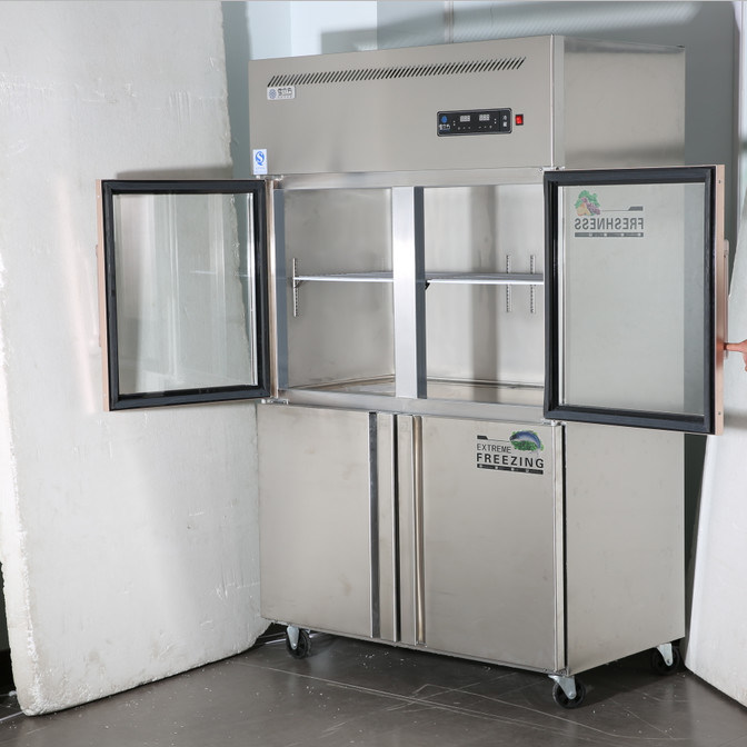 Obere doppelte Glastür-und unterer doppelter Edelstahl-Tür-viertüriger Edelstahl-Gefrierschrank-kommerzielle große Kapazität